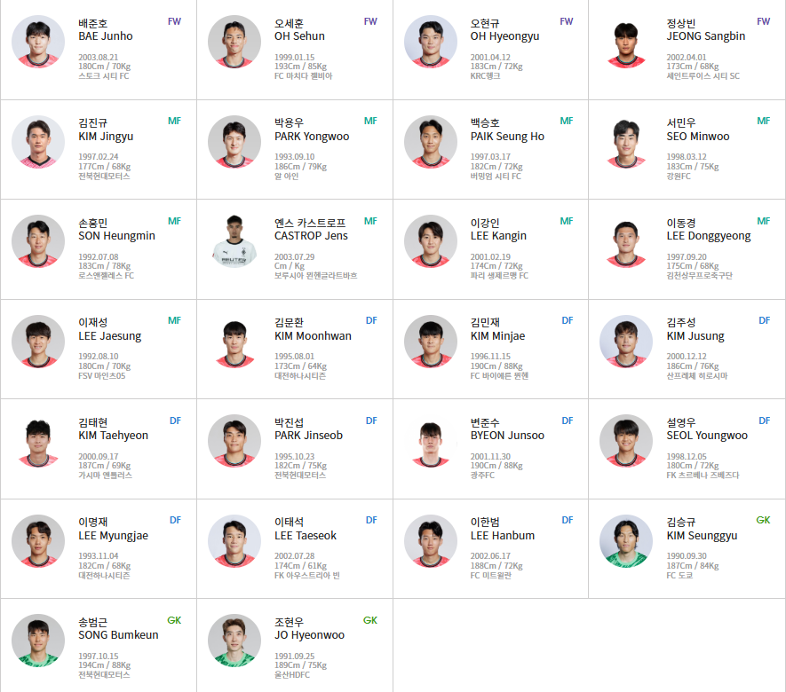 4. 축구대표팀 명단